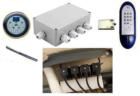 + Equipement pour la gestion des électrovannes en courant continu 210 volts VDC. (Baignoires équipées du drainage par zones) . Entre autres NEOMEDIAM – JACOB DELAFON)