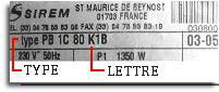 Exemple ci-contre : PB 1C 80 K 1 B (mais vous pouvez également posséder une PBL 1C 80 K 1B)